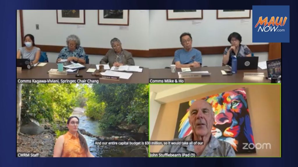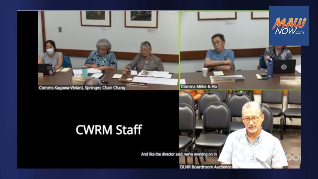 Maui County Department of Water Supply Deputy Director Deputy Water Director James ‘Kimo’ Landgraf (lower right) appears last week before the Hawai‘i Commission on Water Resource Management. PC: YouTube