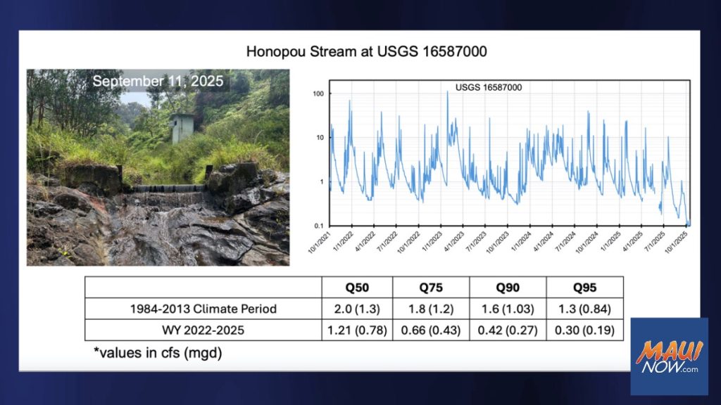 Ayron Strauch of the commission’s Stream Protection and Management Branch described the sustained lack of water in East Maui as an “extreme drought,” following an “extremely dry” season in 2025.