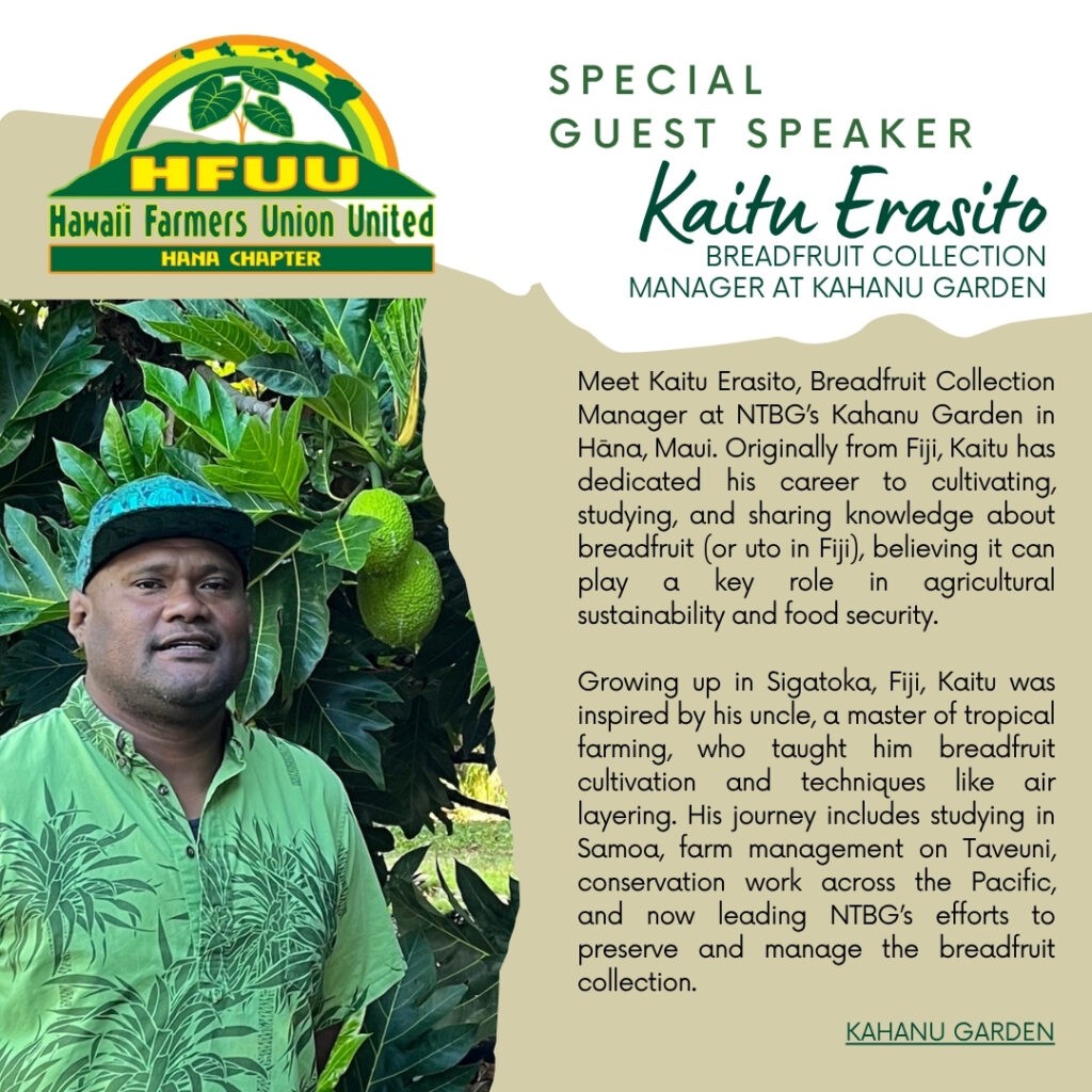 • Special guest speaker Kaitu Erasito, Breadfruit Collection Manager at Kahanu Garden