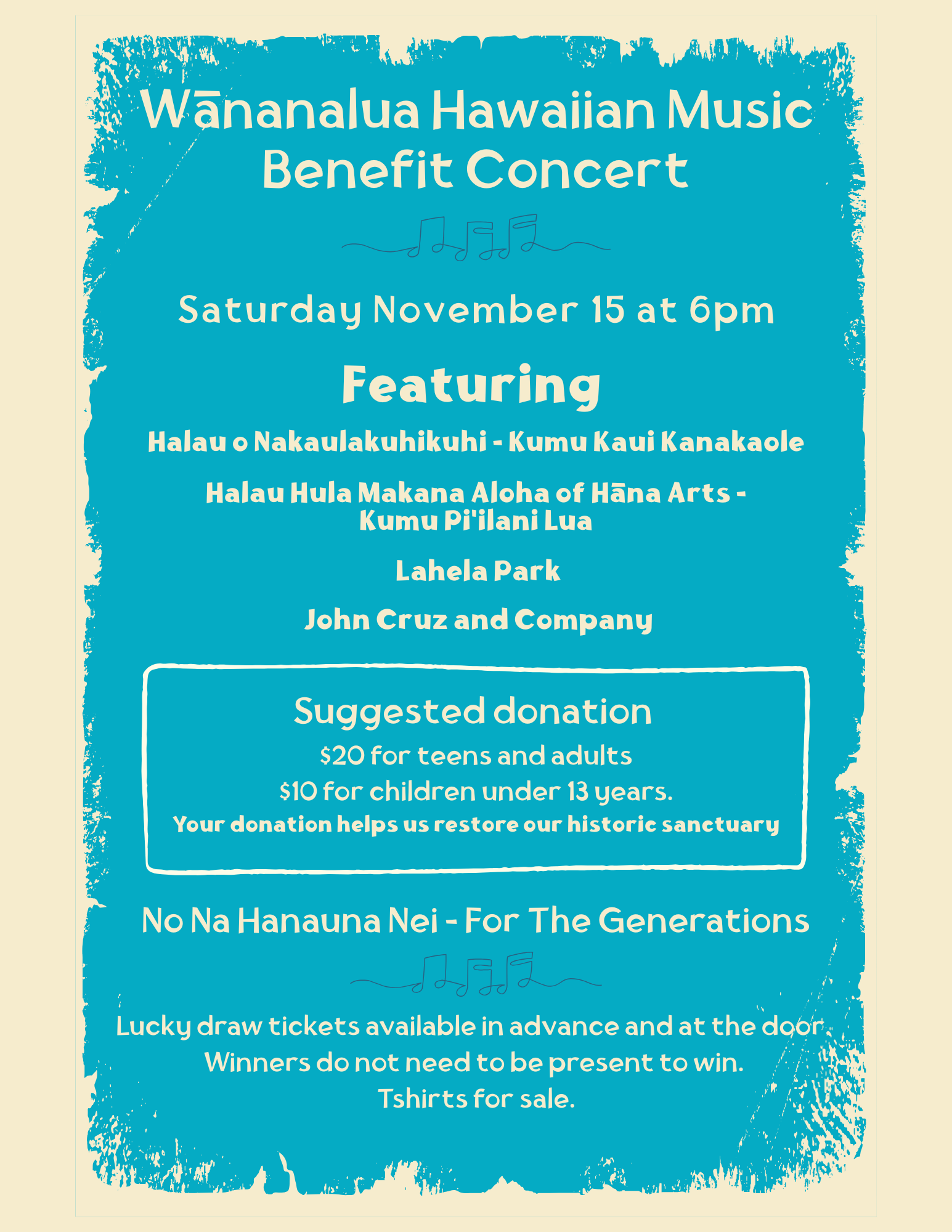 The Wananalua Congregational Church Building Restoration Committee is excited to announce that we will be hosting a silent auction, lucky draw, and concert on November 15th, and we are seeking donations to help make this event a success. All proceeds … Read More |
