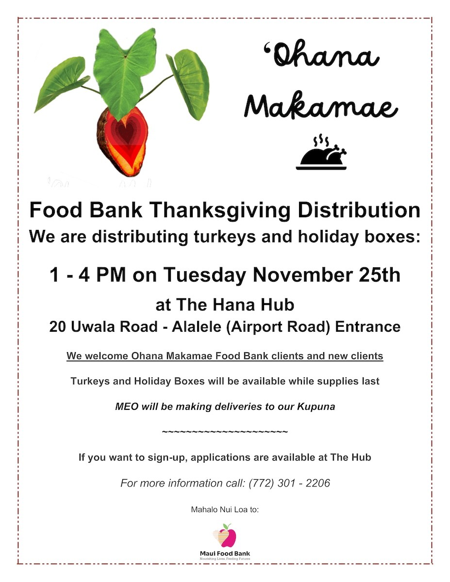 Aloha Save Hana Coast Supporters, Please join us for our monthly community work party, this month we'll be working at Maka'alae. Meet at the Maka'alae baseyard. Bring water, sun/rain protection, work clothes, hand tools, be prepared for light landscaping activities. … Read More